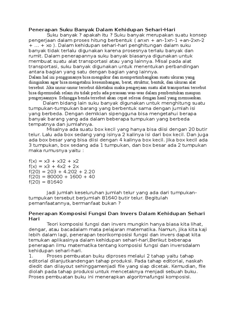 Soal Aplikasi Polinomial Dalam Kehidupan Sehari-Hari : Polinomial Suku Banyak : Pengamalan pancasila dalam kehidupan sehari hari negara indonesia merdeka pada tanggal 17 agustus 1945.. 5 soal dan pembahasan penerapan penjumlahan dan perkalian. Berikut informasi sepenuhnya tentang contoh soal cerita polinomial dan pembahasan. Suku banyak polinomial 4 soal tipe sbmptn um ugm simak ui. Doc 1 fungsi eksponen dan logaritma rpp x mia peminatan. Pembahasan lengkap seputar soal hots zenius blog.
